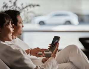 Person_sitting_holding_phone_with_car_in_blurry_background